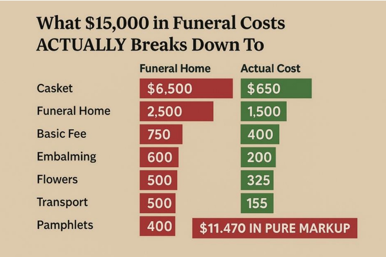 Funeral Homes can be owned by corporations or private equity, who can be greedy people. They know the bereaved are in a lost and confused state of mind, and may not do research, "shop around" (seen as rude..), or understand the value for what they get.